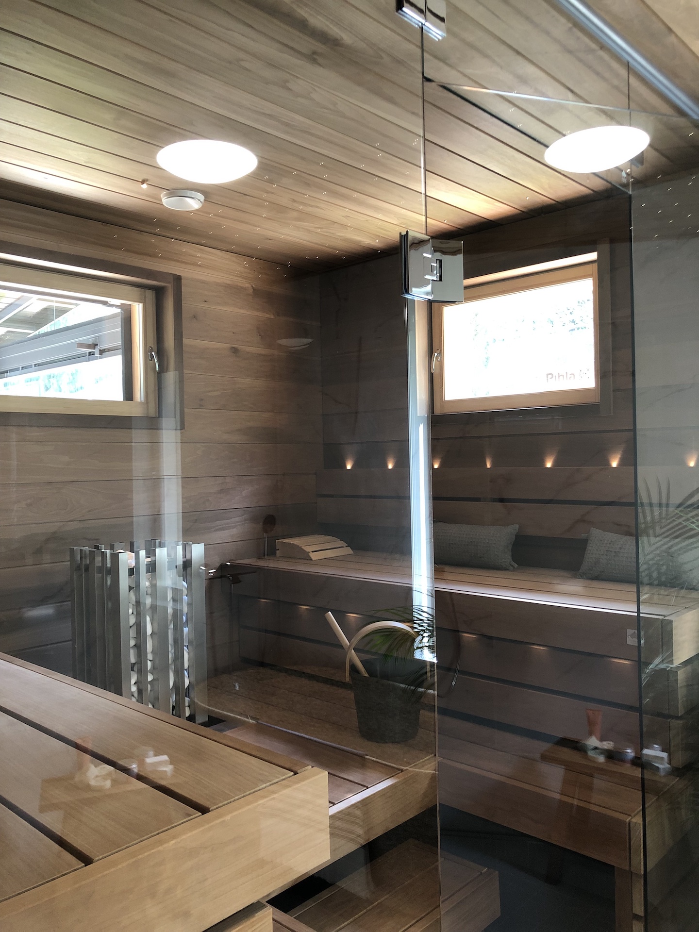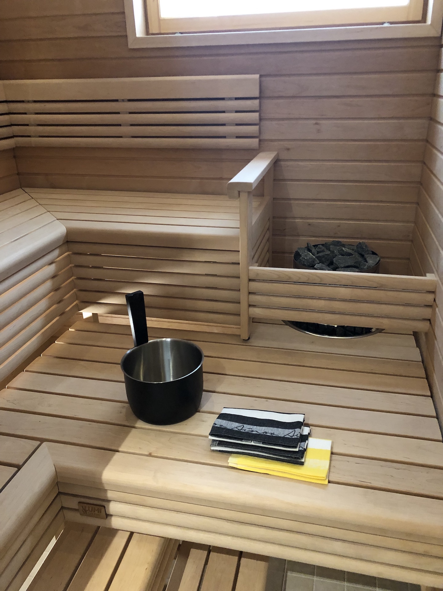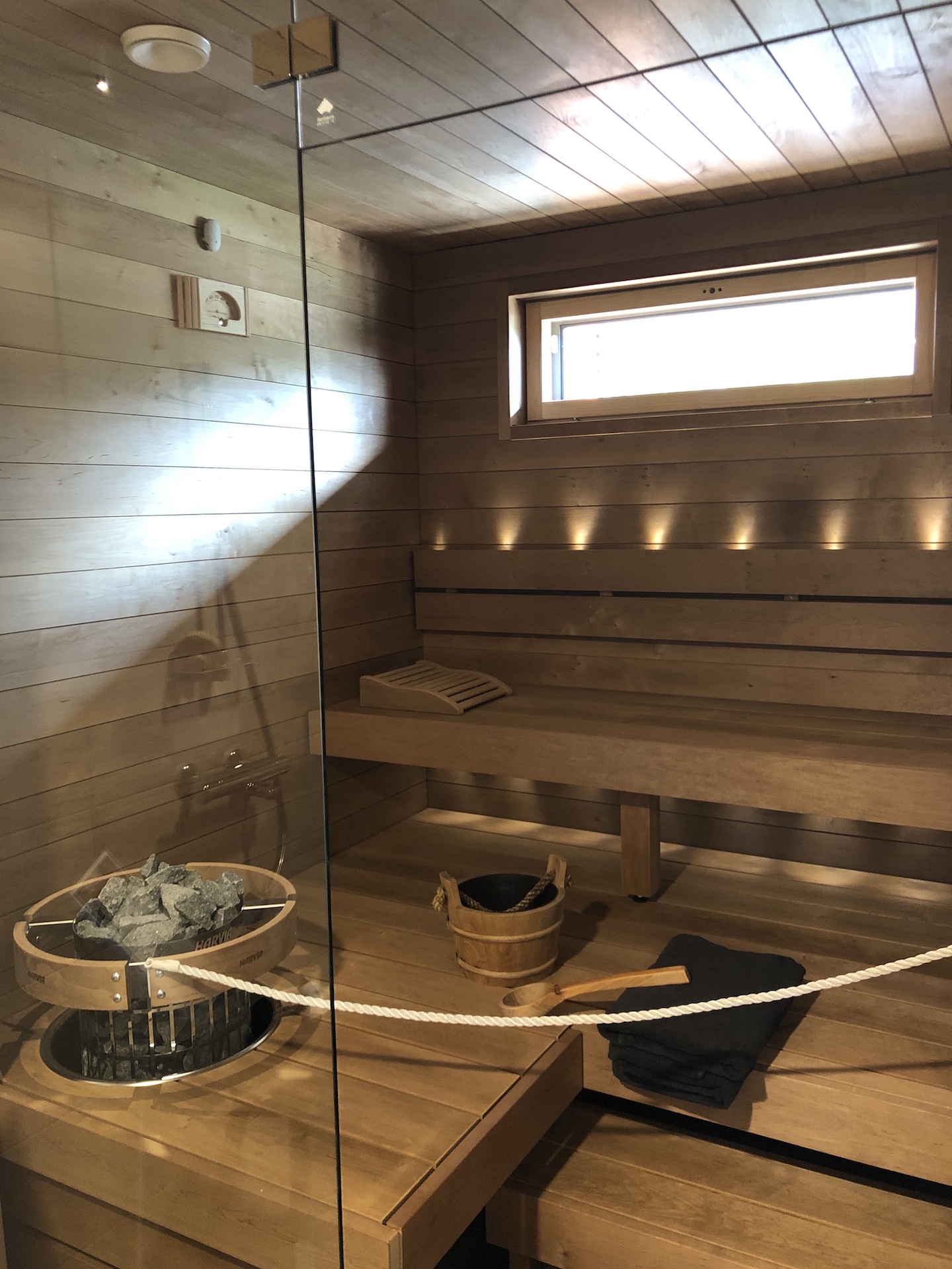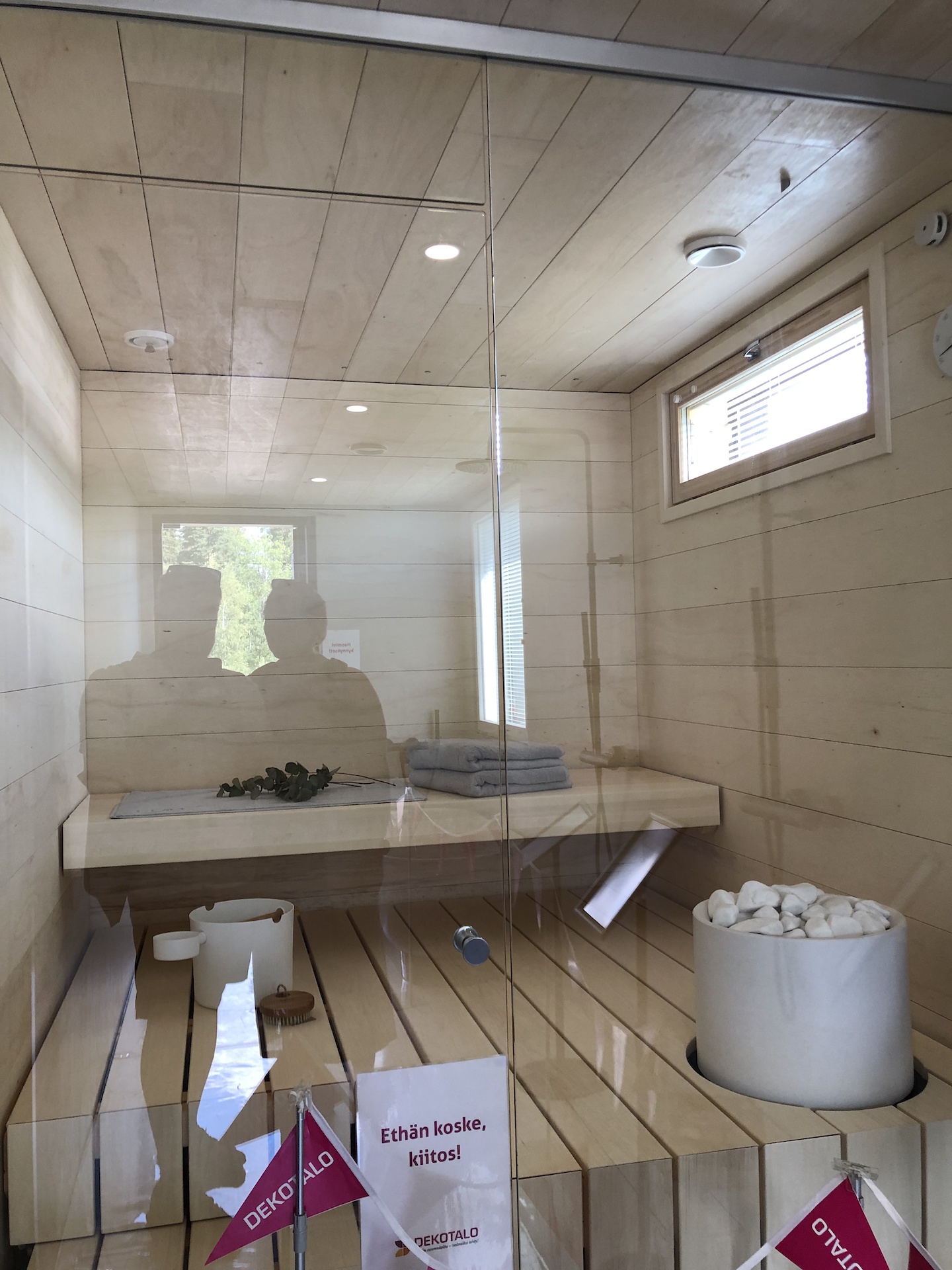 Landen takassa oli kätevä osio haloille. Myös saunassa oli käytetty hieman enemmän ajatusta lauteiden ja selkänojien osalta.