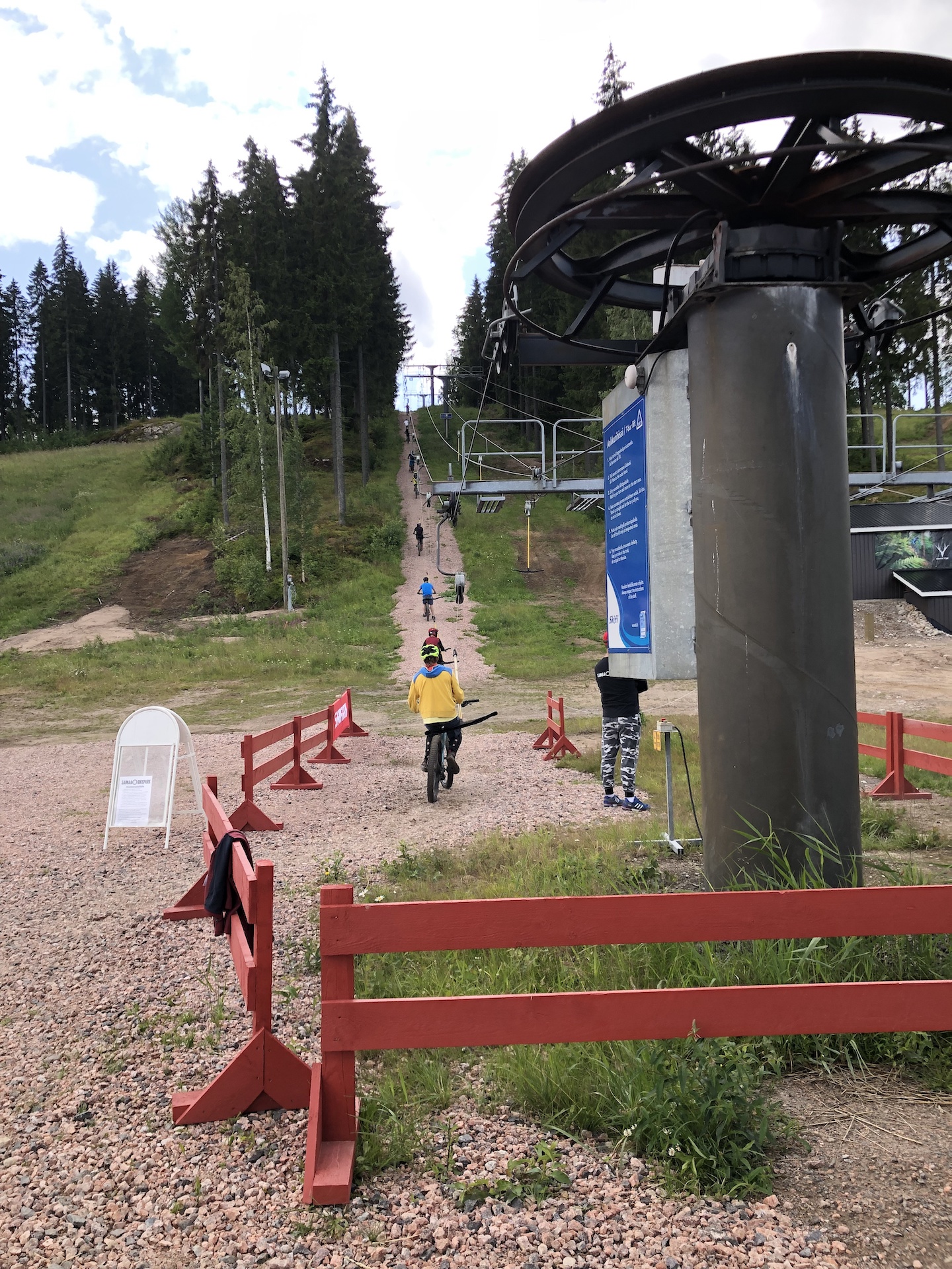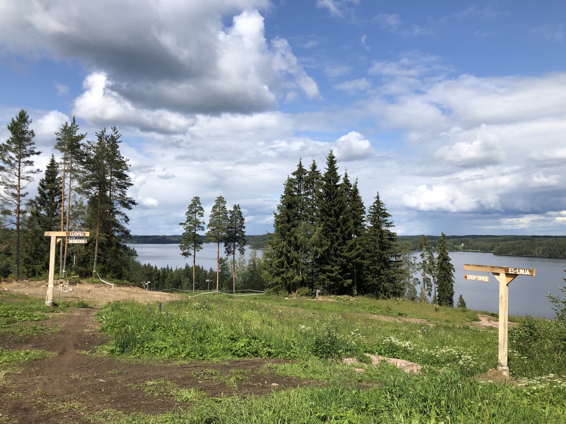 Tavoitteena Saimaa Bike Parkilla on avajaisiin (3. – 4.8) mennessä avata yksi uusi DH-reitti ja pump trackia ja dual-rataa kuulin kaavailtavan hissin vasemmalle puolelle. Nyt kaikki reitit lähtevät hissin oikealta puolelta ja lähdöt ovat hyvin merkattu.