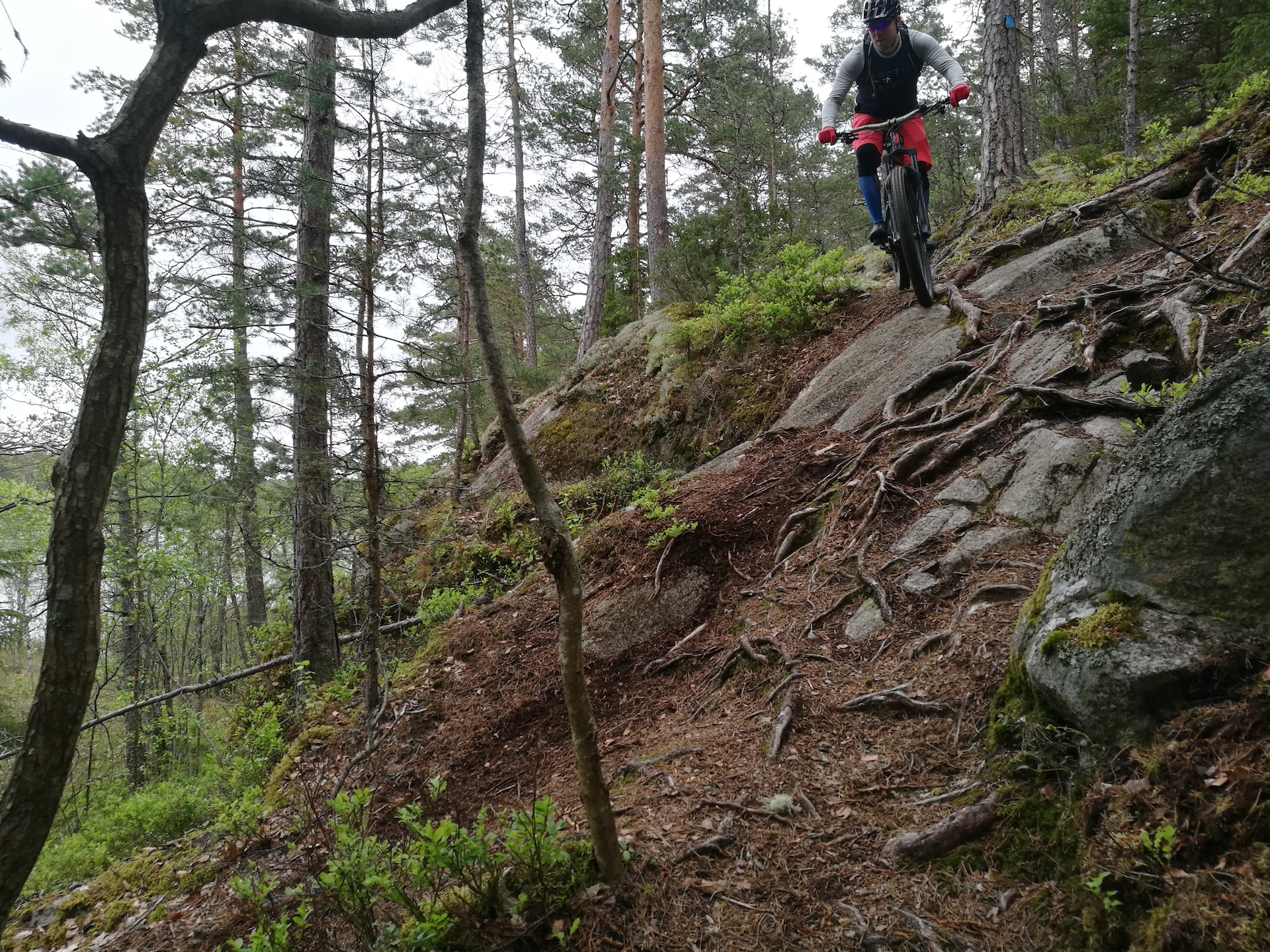 Tukholman kallioisissa ja juurakkoisissa maastoissa toimii sekä täysjousitettu enduropyörä etenkin Hellasgårdenissa että jäykkäperäinen endurohenkinen pyörä. Reissulla näkyi myös muutama läskipyörä, mutta suurin osa oli liikenteessä 29″ -renkailla ja 130-150 mm joustavilla pyörillä. Itselläni alla oli Specialized Enduro Elite 6/Fattie, eli 29-tuumaisilla renkailla varustettu maastopyörä. Kalusto toimi koko reissun ajan loistavasti, enkä kokenut yhtään teknistä ongelmaa. Specializedin 2,6″ Purgatory ja Butcher GRID-versioina ja Gripton-seoksella kestivät litkutettuina hyvin kallioiden ja kivien haasteet ja pitoa löytyi mainiosti rullaavuutta unohtamatta.