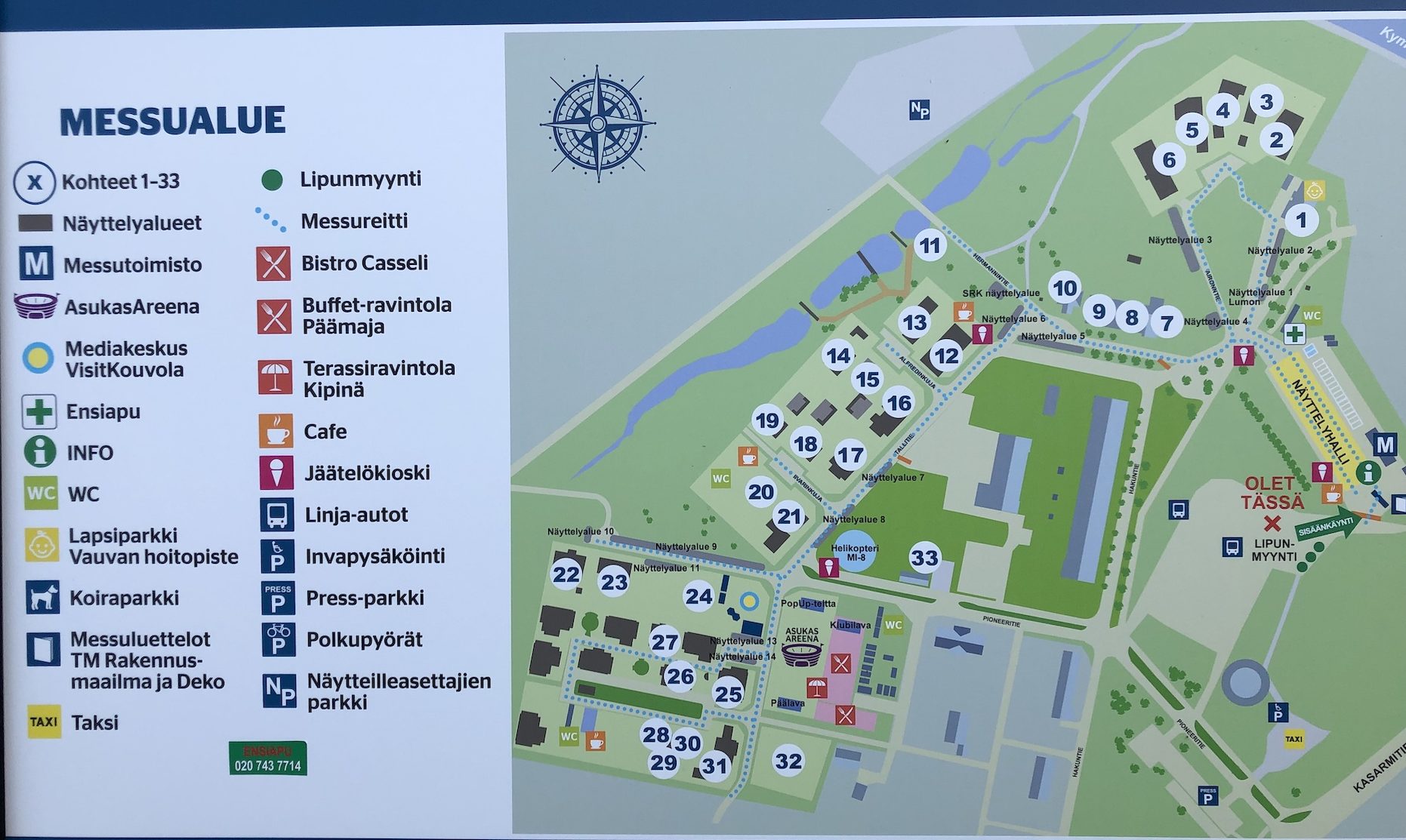 Asuntomessut ovat avoinna kello 10-18 ja sisäänpääsylippu on ennakkoon verkkokaupasta ostettuna 26 euroa ja pysäköinti 10 euroa. Pysäköinti on Kouvolan raviradalla, josta on maksuton bussikuljetus noin 15 minuutin matkan päähän Pioneeripuistoon.